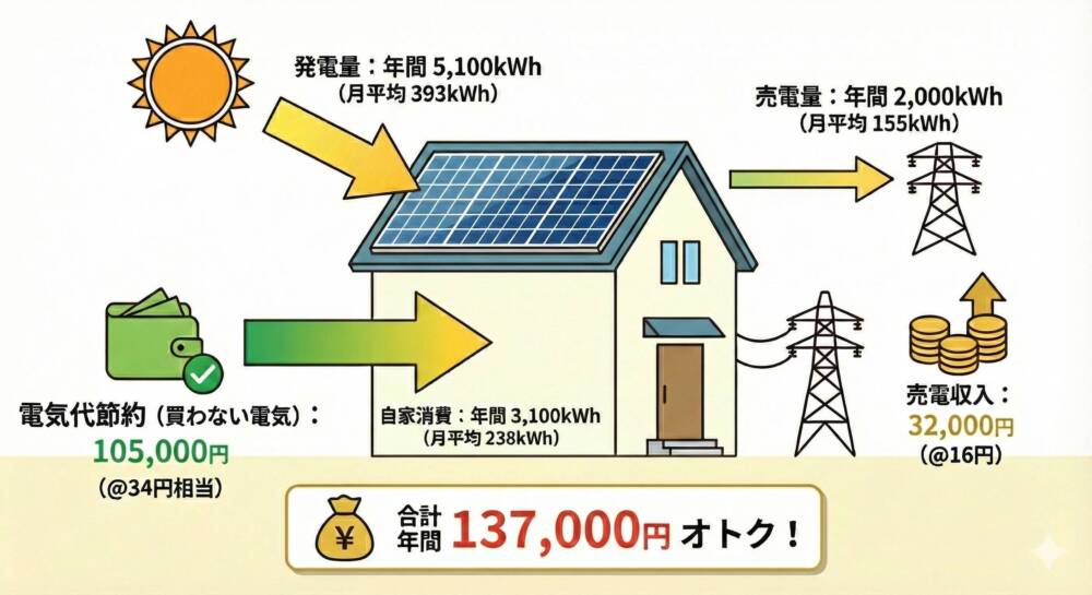 | 自家消費 | 3,100kwh | 105,000円 |