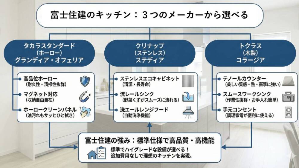 【2026年最新】富士住建の標準キッチン3社を徹底比較!おすすめや後悔しない選び方は?オプション費用も大公開!